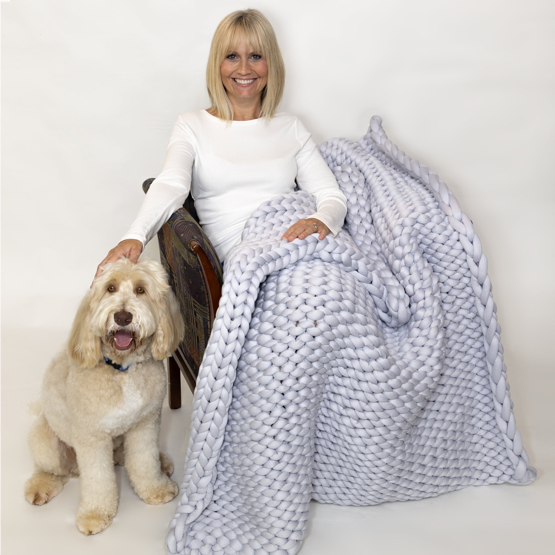 Chunky Knit Weighted Throw, Silver/Gray, 10 pounds